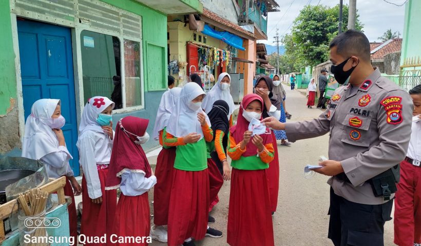 Lebak – Pandemi Belum Berakhir, Personil Polsek Cipanas terus berikan Himbauan Prokes dan bagikan Masker kepada wali murid dan siswa-siswi MI BANI KARIM Desa Sukasari…