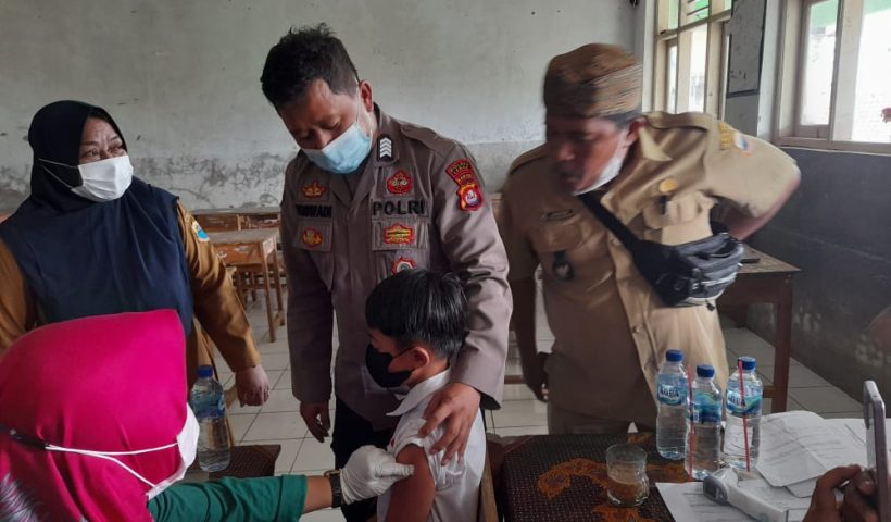 Selengkapnya... Polsek Cipanas Polres Lebak, gelar Vaksinasi Covid 19 bagi anak usia 6-11 tahun di SDN 1 & 2 Pasirhaur Cipanas
