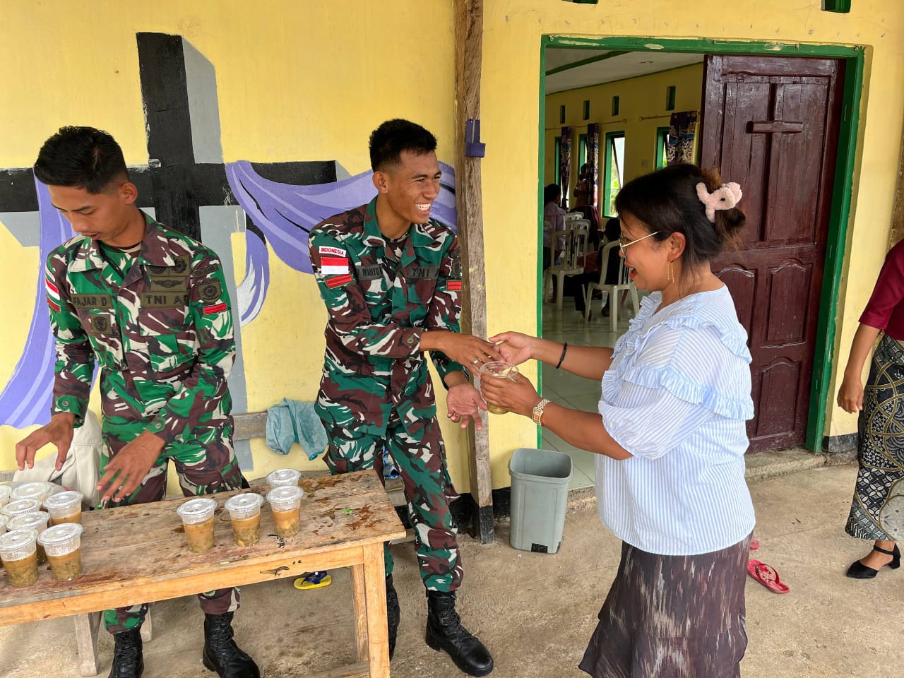 Kegiatan yang terasa sederhana tapi penuh makna ini bukan cuma sekadar berbagi makanan. Ini menjadi bagian penting dari pembinaan teritorial Satgas yang bertujuan mempererat ikatan persaudaraan antara prajurit TNI dan warga di wilayah perbatasan. Personel Satgas tidak hanya membagikan bubur, tapi juga turut berbaur, berbicara hangat, dan berbagi tawa bersama jemaat selama ibadah. Respon masyarakat pun antusias – setiap mangkuk bubur yang diberikan seolah-olah membawa pesan kebaikan dan kedekatan emosional yang sesungguhnya.