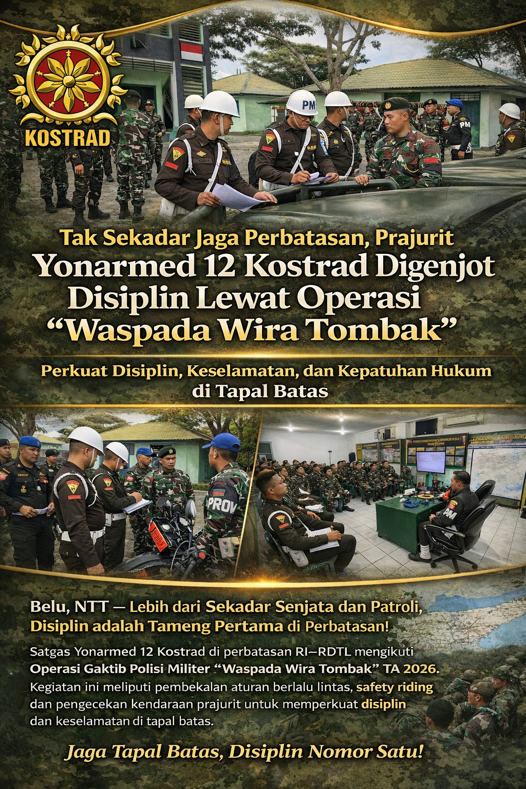 Melalui Operasi Gaktib “Waspada Wira Tombak” TA 2026 yang digelar sepanjang tahun, diharapkan setiap prajurit semakin sadar bahwa keselamatan diri adalah bagian dari keberhasilan tugas negara. Karena di wilayah perbatasan, ketertiban dan disiplin adalah tameng pertama sebelum senjata diangkat.