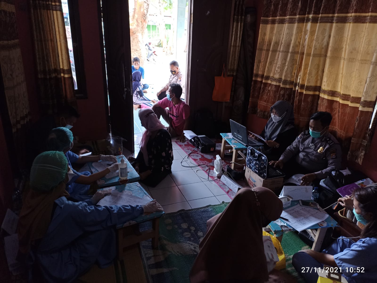 Lebak – Pelitakota.id Lagi Polsek Cibadak Polres Lebak bekerjasama dengan Puskesmas Cibadak lakukan gelar gebyar vaksin Presisi Covid – 19 hati ini ditargetkan sebanyak 200 orang di masing-masing Desa dengan sasaran khususnya warga masyarakat di wilayah hukum Polsek Cibadak Polres Lebak Kecamatan Cibadak Kabupaten Lebak dan umumnya masyarakat sekitar Kecamatan Cibadak. Sabtu, 27/11/2021