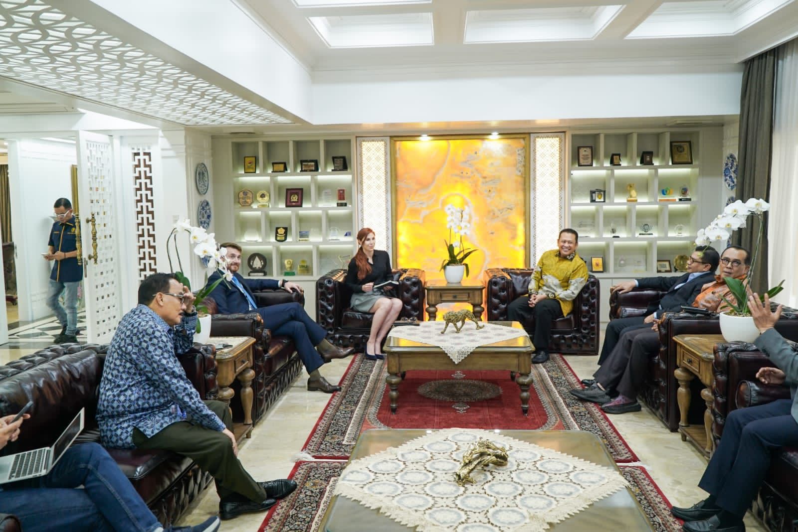 JAKARTA – Ketua MPR sekaligus Wakil Ketua Umum Partai Golkar Bambang Soesatyo menerima kunjungan informal Mrs. Dominique Plewes dari Amerika Serikat. Selain sebagai CEO Del Mar Country Club, Mrs. Dominique Plewes juga menjabat Advisor Freedom Research Foundation serta Chairperson Special Operation Forces Support Foundation yang fokus membantu Pasukan Operasi Khusus Amerika dan keluarganya.