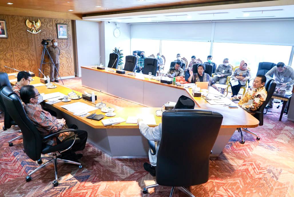 JAKARTA – Ketua MPR RI Bambang Soesatyo bersama Wakil Ketua MPR RI Bidang Penyerapan Aspirasi Masyarakat & Daerah Lestari Moerdijat dan Fadel Muhammad menerima Ketua Forum Aspirasi Konstitusi MPR RI Prof Jimly Asshiddiqie, anggota MPR RI dari Kelompok DPD RI yang juga pakar hukum tata negara. Keberadaan Forum Aspirasi Konstitusi berperan untuk memperkuat tugas MPR RI sebagaimana diatur dalam pasal 5 UU MD3, khususnya yang terdapat dalam ayat D, yakni menyerap aspirasi masyarakat berkaitan dengan pelaksanaan Undang-Undang Dasar Negara Republik Indonesia Tahun 1945 (UUD NRI 1945).