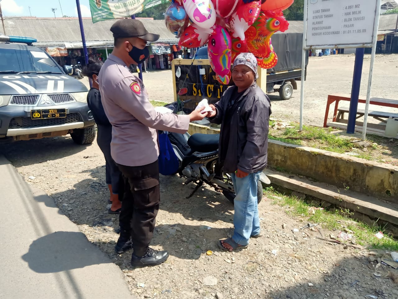 LEBAK – PELITAKOTA.ID Guna Penanggulangan dan pencegahan penyebaran virus Covid-19, Polsek Muncang Polres Lebak Polda Banten melaksanakan pembagian masker secara gratis kepada Warga dan pengguna jalan Desa ciminyak Kecamatan Muncang,Lebak. Minggu (21/11/2021)