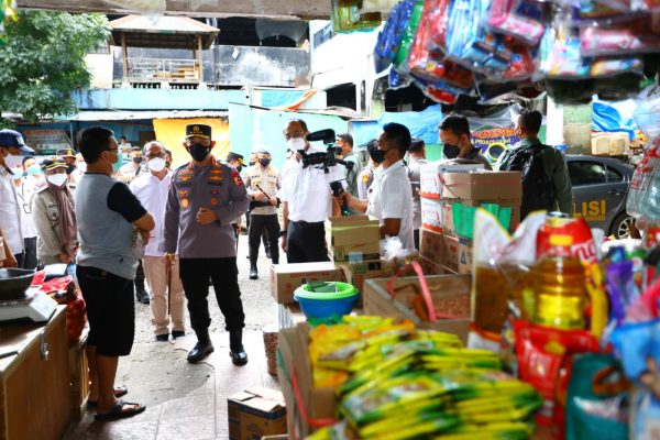 Jakarta – Kapolri Jenderal Listyo Sigit Prabowo meninjau langsung Pasar Minggu, Jakarta Selatan, Senin (21/3/2022). Kedatangannya untuk memastikan ketersediaan minyak goreng curah dan harga penjualan kepada masyarakat sesuai dengan harga eceran tertinggi yang ditetapkan Pemerintah.