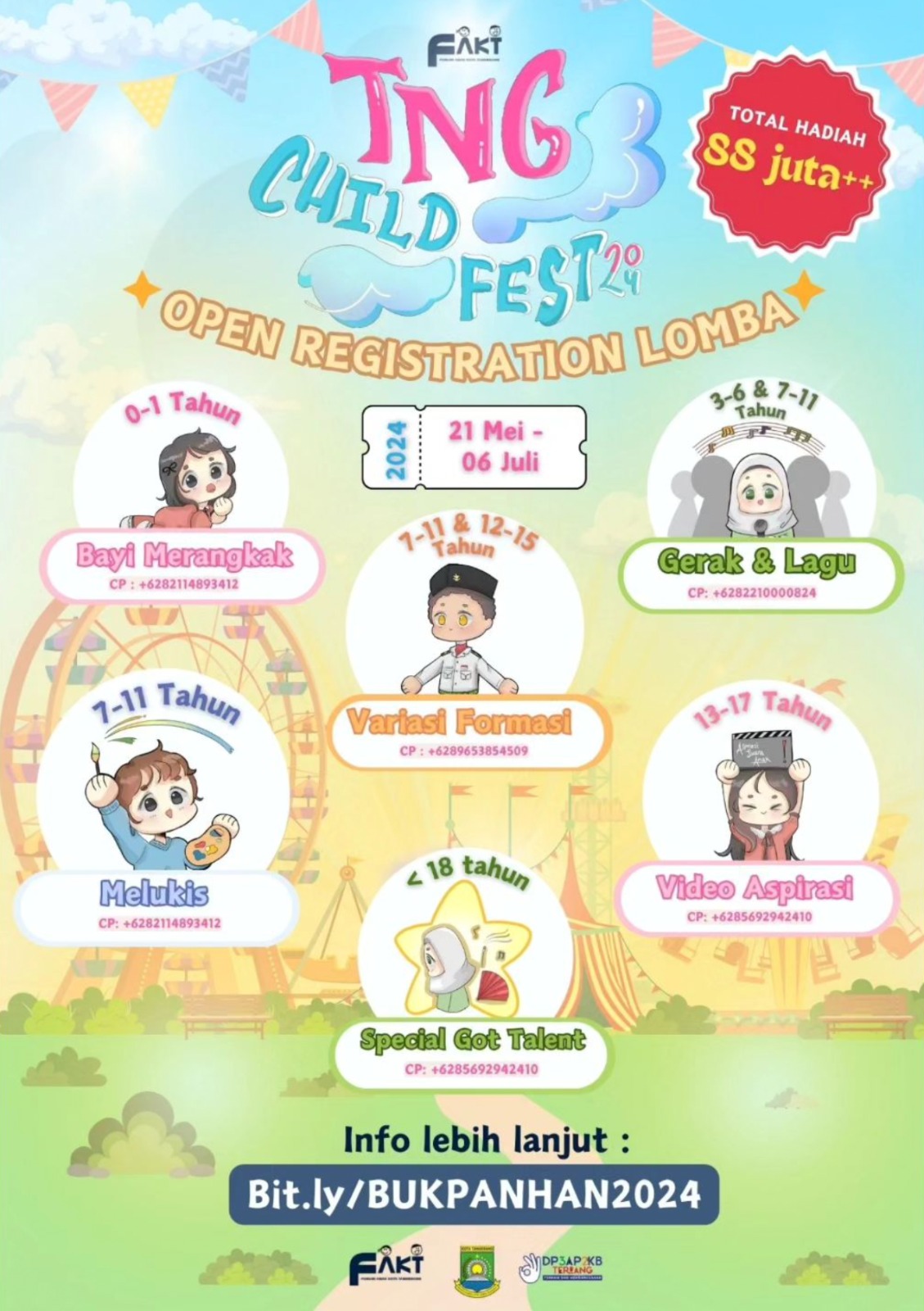 Kata Jatmiko, terkait TNG Child Fest 2024 lebih lanjut dapat dipantau melalui laman https://linktr.ee/forumanakkottang sedangkan panduan acara dapat diakses melalui https://bit.ly/BUKPANHAN2024.