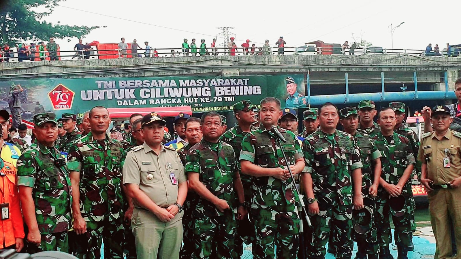 Jakarta -Ribuan prajurit Tentara Nasional Indonesia (TNI) melaksanakan kegiatan bersih-bersih sampah di sepanjang aliran Sungai Ciliwung, tepatnya di kawasan Tambora, Jakarta Barat, pada Minggu pagi, 13 Oktober 2024. Kegiatan ini melibatkan pembersihan area sungai sepanjang lebih dari 80 kilometer sebagai bagian dari peringatan Hari Ulang Tahun (HUT) TNI yang ke-79.