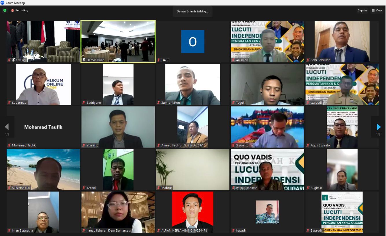 Jakarta – Merespon polemik RUU MK, Oase Law Firm menyelenggarakan Forum Group Discussion (FGD) dengan mengangkat tema “Quo Vadis Perubahan UU MK: Lucuti Independensi, Penguatan KKN & Oligarki, ataukah singkirkan Hakim Progresif”.