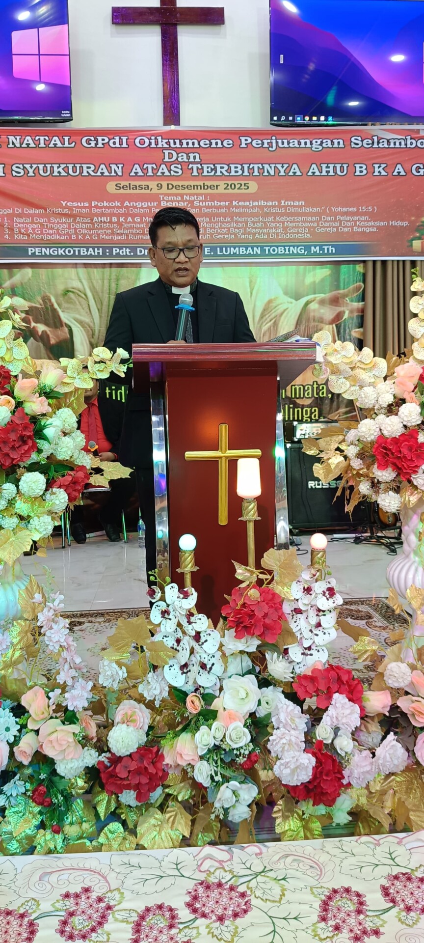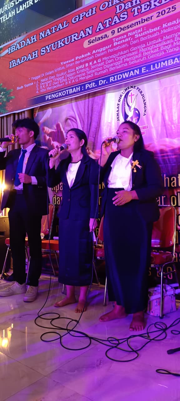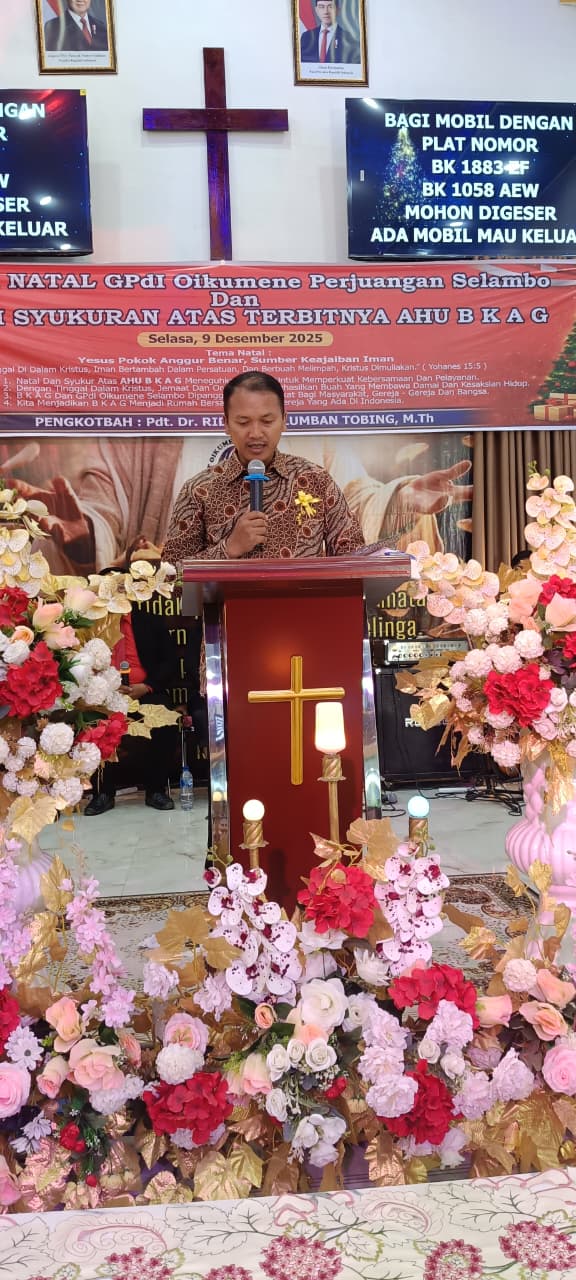 Selama acara perayaan Natal pada 9 Desember 2025, dalam pemberitaan yang penuh makna, Pdt. Dr. Ridwan E. Lumban Tobing, M.Th. menyampaikan pesan inti dari Yohanes 15:5:
