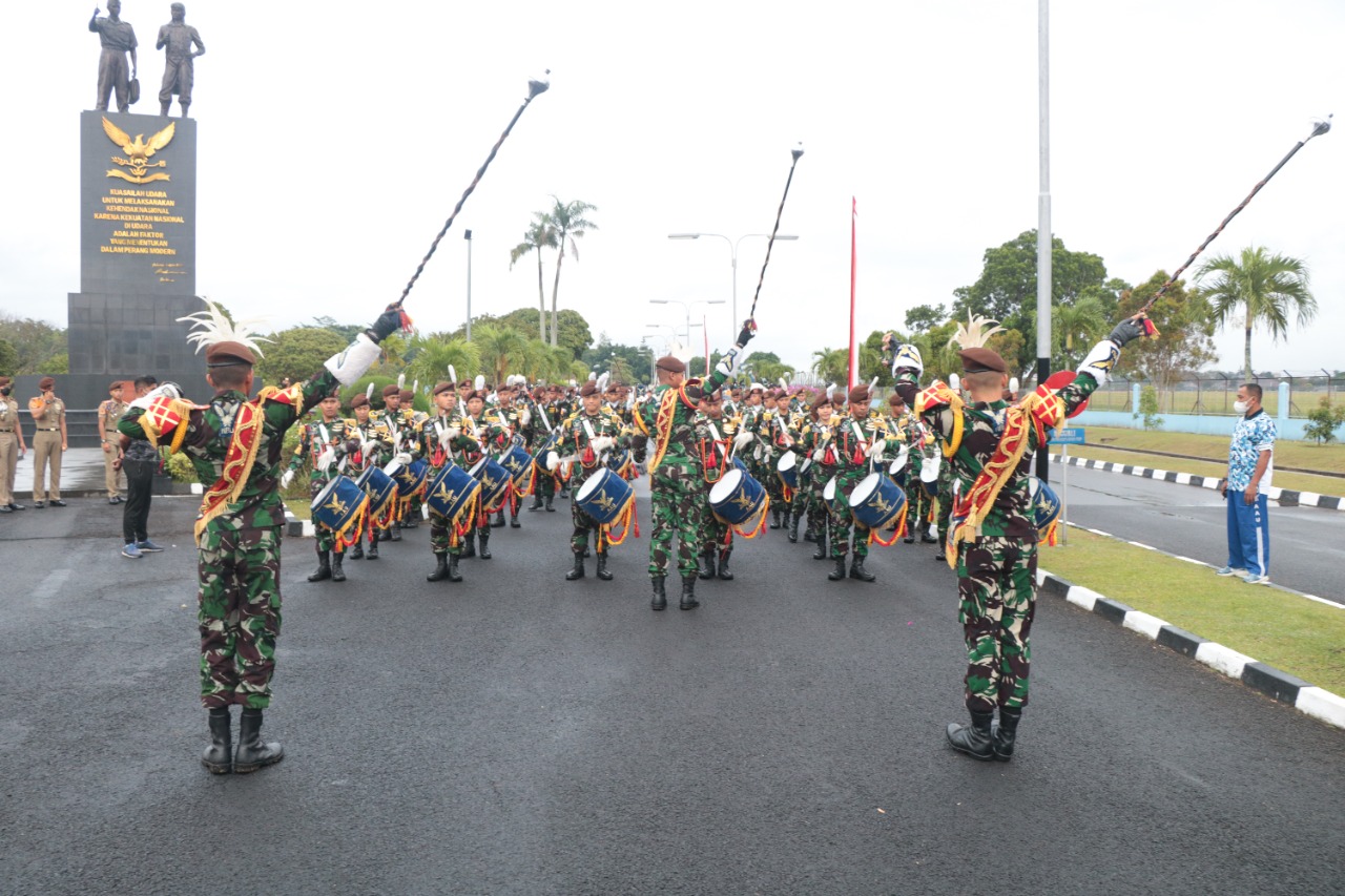 Meski langit mendung dan sedikit gerimis, namun para Karbol (Taruna AAU) tetap melaksanakan drumband. Hentakan langkah tegap para Karbol seirama dengan suara drumband yang dimainkan, spontan menghapus keheningan. Para pengunjung yang cemas akan turunnya hujan pun berubah penuh semangat, senada gemuruhnya suara Drumband AAU Gita Dirgantara.
