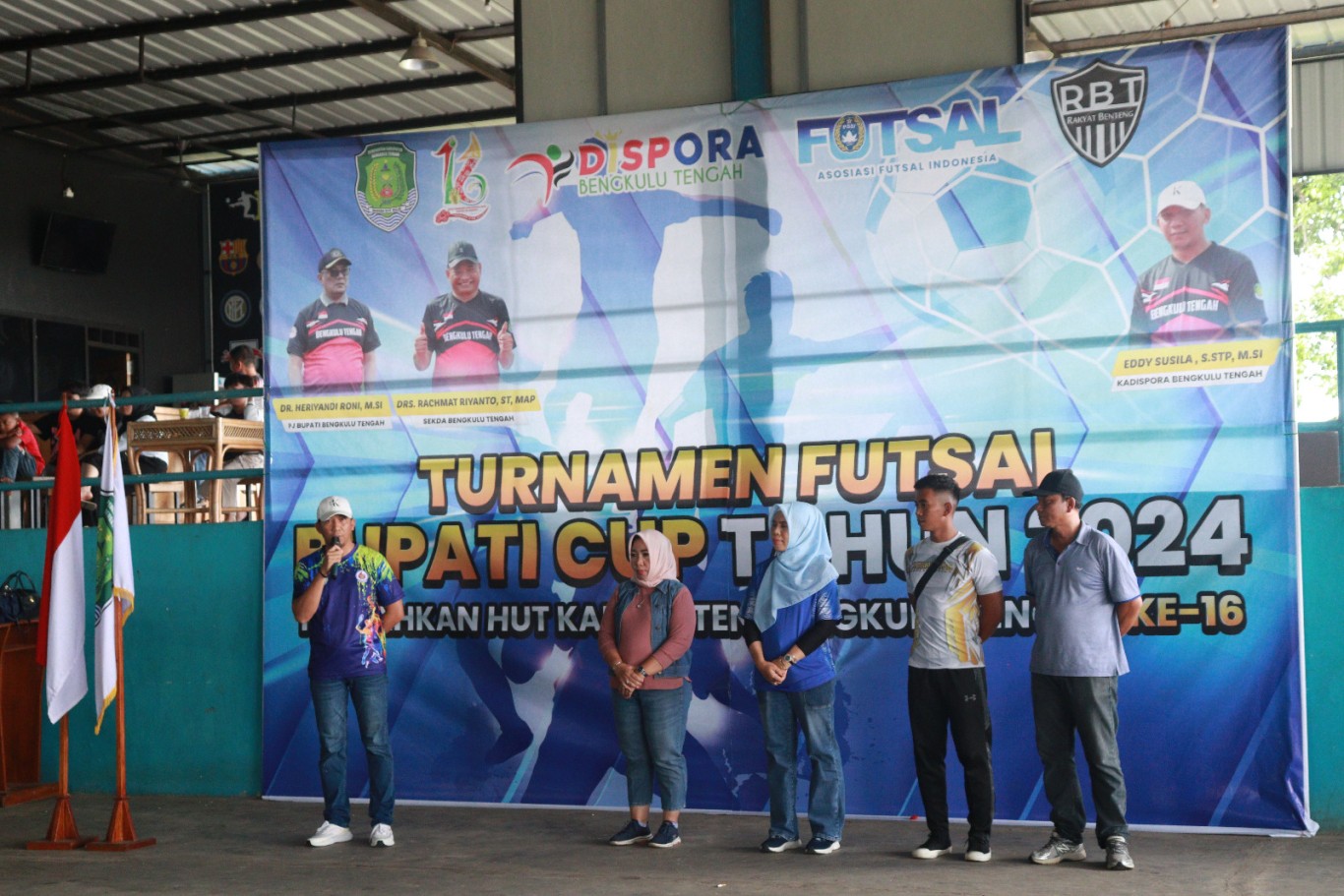 Bengkulu Tengah, Pelitakota.id – Pemerintah Kabupaten Bengkulu Tengah melalui Asisten Bidang Perekonomian dan Pembangunan Eka Nurmaeni, S.E., M.Pd., menyerahkan hadiah berupa piala dan uang pembinaan kepada pemenang Turnamen Futsal Bupati CUP tahun 2024 dalam rangka memeriahkan HUT ke 16 Kabupaten Bengkulu Tengah.