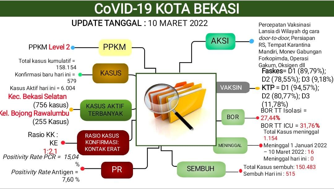 Kota Bekasi – Laporan perkembangan Covid 19 Kota Bekasi, Dinas Kesehatan Kota Bekasi mengeluarkan update pertanggal 10 Maret 2022. Kota Bekasi masuk dalam PPKM Level 2.