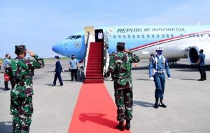 Pesawat Kepresidenan Indonesia-1 lepas landas pada pukul 13.00 WIB dari Bandar Udara Internasional Juanda, Kabupaten Sidoarjo, Provinsi Jawa Timur.