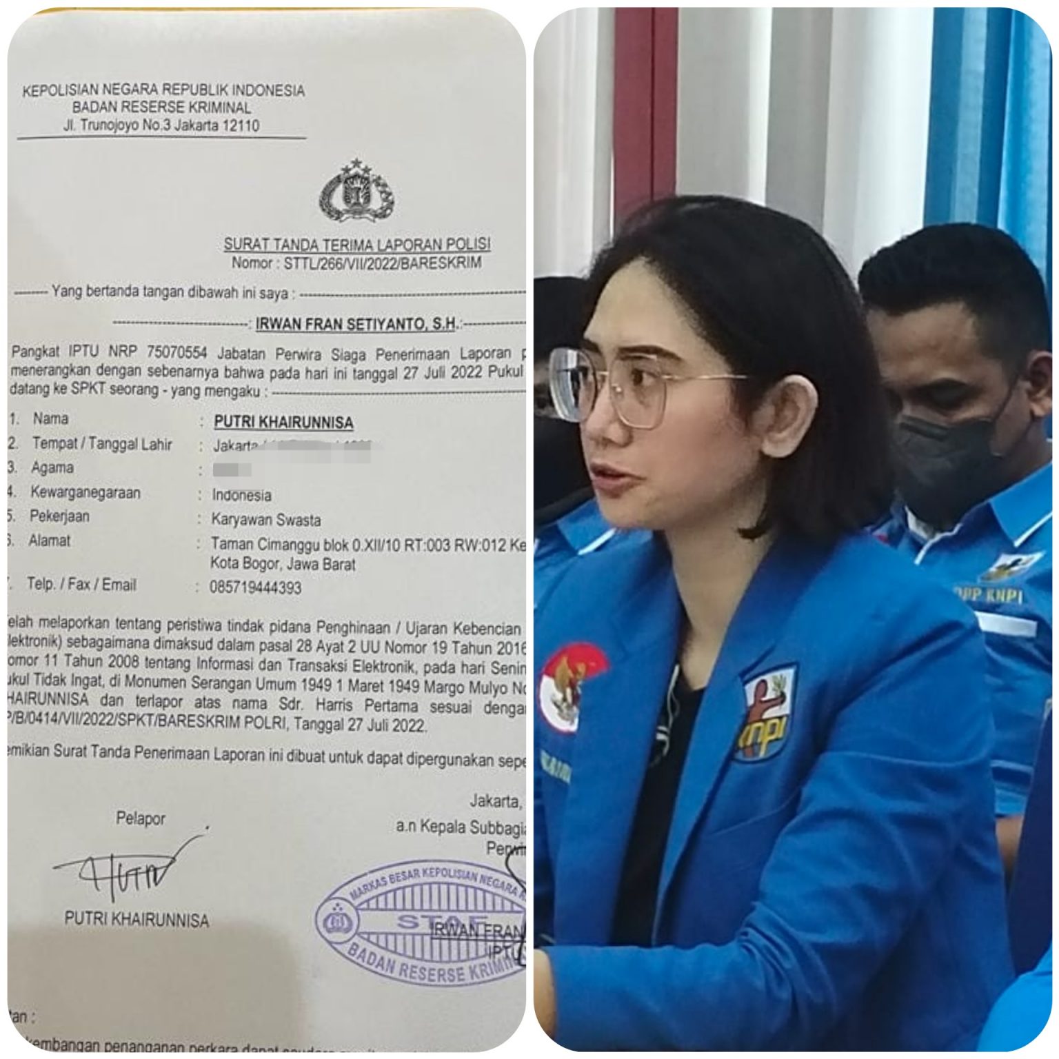 Menurut Nisa apaan akrabnya, laporan ke polisi diterima Reskrim Cyber Mabes Polri dengan Nomor : STTL 266/VII/2022/BARESKIM pada Kamis (28/07/2022) jam 20.20 WIB. HP dilaporkan dengan dugaan Tindak Pidana Ujaran Kebencian / Hatespeech (Melalui Media Elektronik) dengan Pasal 28 ayat 2 UU No 19 tahun 2016 tentang perubahan atas UU 18 tentang Informasi dan Transaksi Elektronik pada Senin, (25/07/2022).