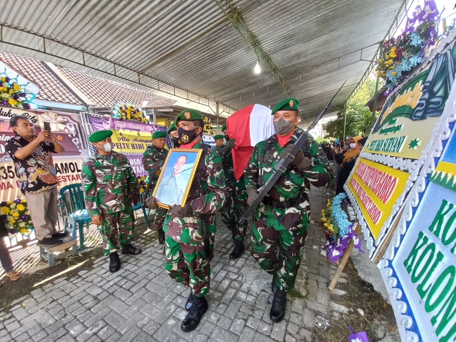 Boyolali – Komandan Kodim 0724/ Boyolali, Letkol Arm Ronald F Siwabessy, M.A. memimpin pemakaman Peltu (Alm) Hadi Suryani anggota Koramil 10/ Sambi Kodim 0724/Boyolali yang meninggal dunia karena sakit. Almarhum di semayamkan di Rumah duka di Perum Taman Sentosa Deda Ngargorejo Kecamatan Ngemplak Kabupaten Boyolali dan akan dimakamkan di TPU Dukuh Pancuran Desa Sempulur Kecamatan Karanggede Kabupaten Boyolali (07/07/2022). Prosesi pemakaman dilakukan dengan upacara militer.