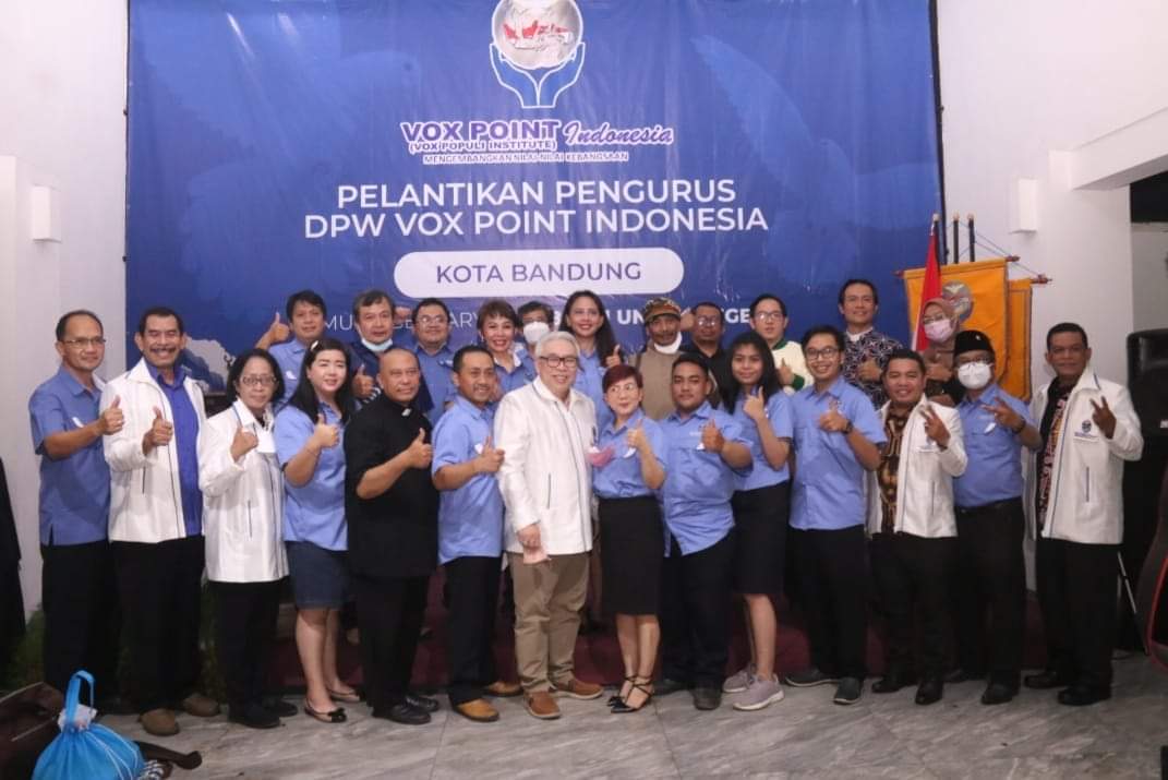 Pelantikan yang dipimpin Ketua DPD Vox Point Indonesia Jawa Barat, Vincentia Jenni Retno itu dihadiri sejumlah Pengurus DPN Vox Point Indonesia, Pimpinan DPRD Kota Bandung dan anggota DPRD Kota Bandung, Bimnas Polres Bandung, pimpinan partai politik dan Ormas di lingkungan Kota Bandung.