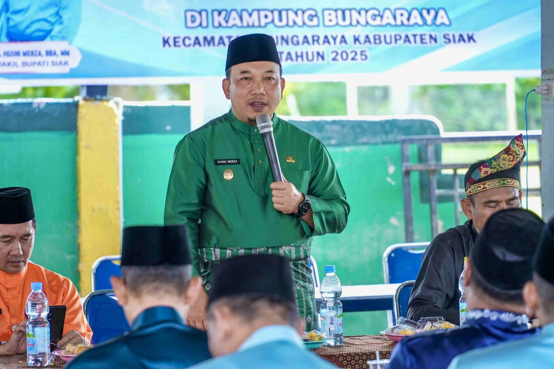 Imbauan tersebut disampaikan Husni Merza saat menghadiri Program Bupati Bekerja dan Ngantor (Bujang) Kampung ke-121 di Kampung Bungaraya, Kecamatan Bungaraya, Kabupaten Siak, Provinsi Riau pada Jumat (17/1/2025).