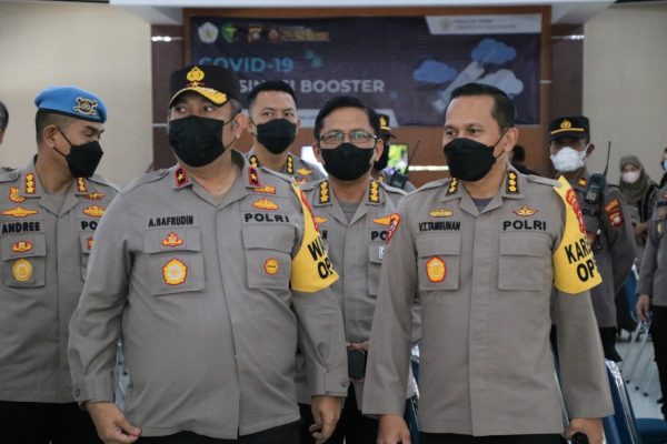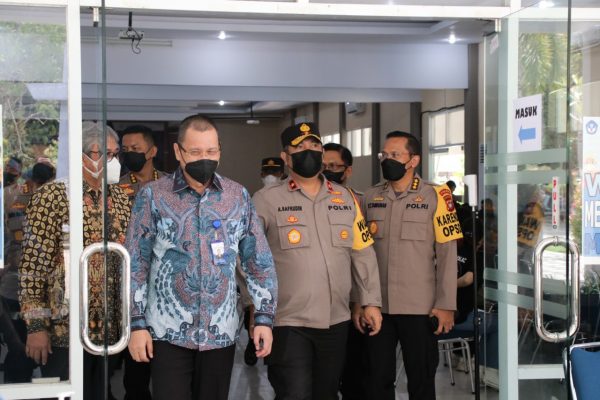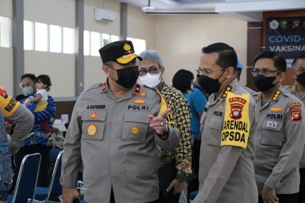 PONTIANAK, KALBAR – Wakil Kepala Kepolisian Daerah Kalimantan Barat Brigjen Pol Asep Safrudin meninjau secara langsung Pelaksanaan Vaksinasi Serentak yang dipimpin oleh Wakapolri Komjen Pol Gatot Eddy Pramono, Kamis (7/4).