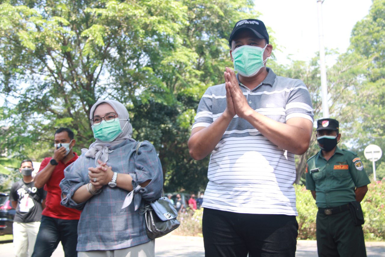 KOTA BEKASI – PELITAKOTA.ID Wakil Wali Kota Bekasi Dr. Tri Adhianto didampingi istri, Wiwiek Hargono tinjau pelaksanaan vaksinasi yang diadakan oleh Kesdam Jaya dilokasi Perum Green Park Jatimelati Kecamatan Pondok Melati, Rabu (11/08/2021).