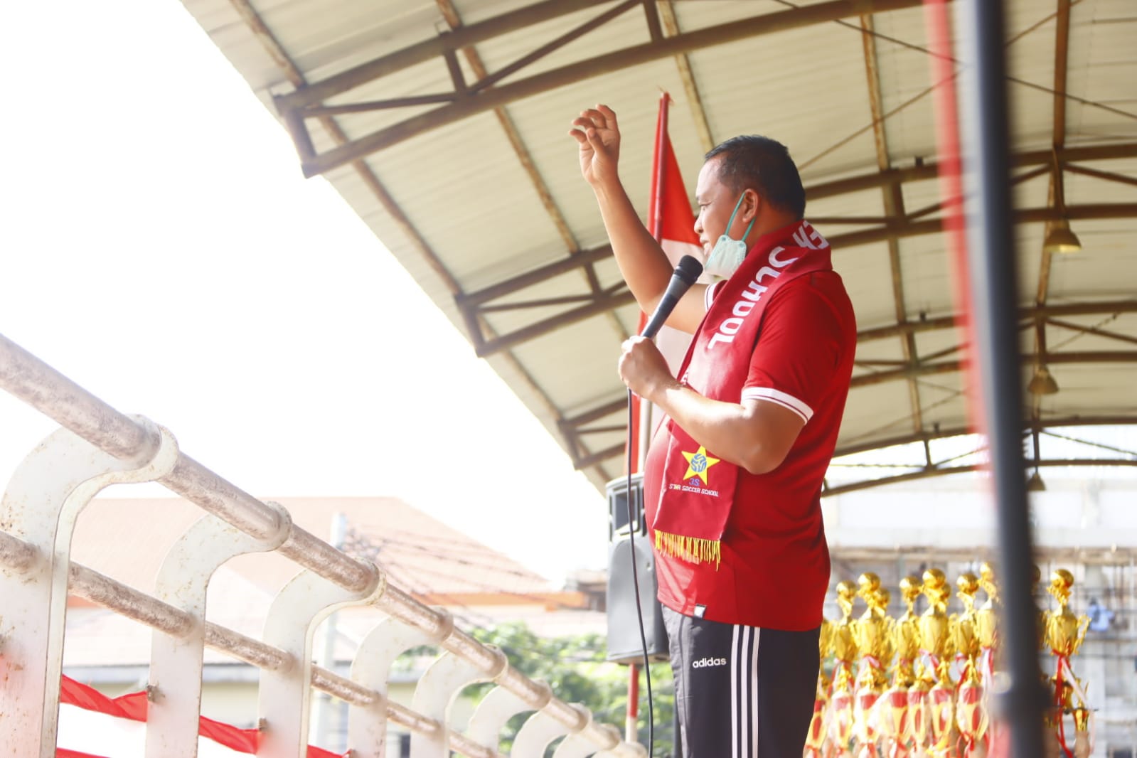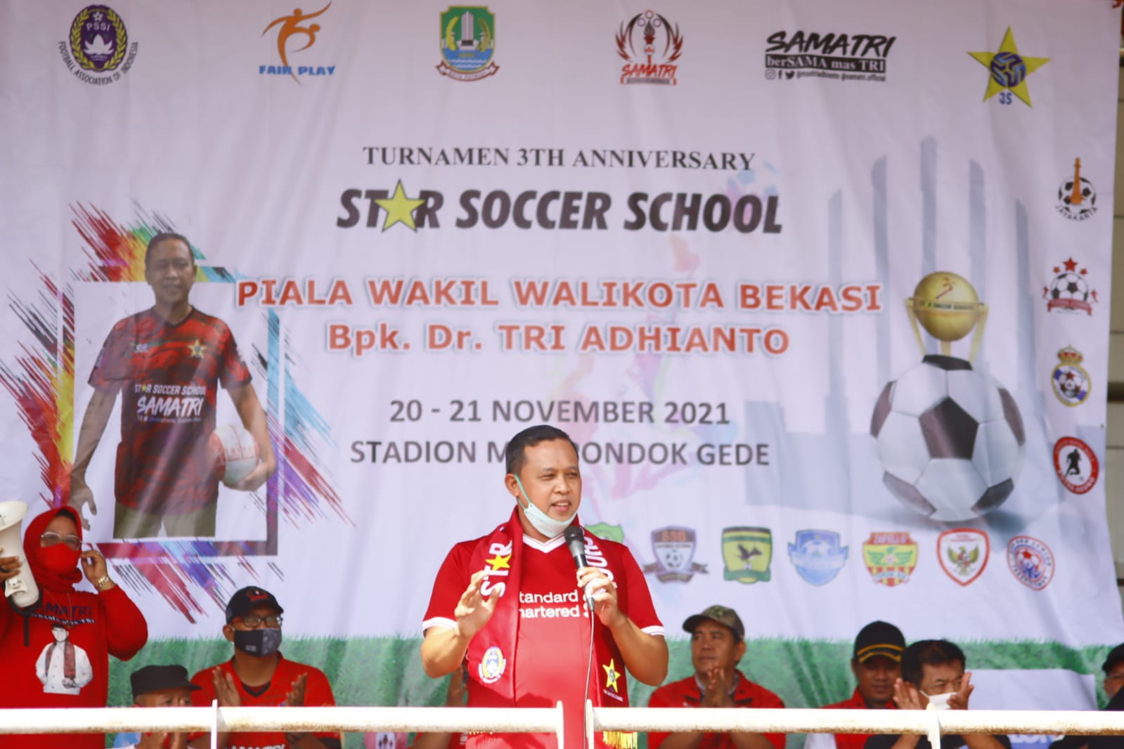 Pelitakota.id | KOTA BEKASI – Dalam rangka pencarian bakat sepak bola usia 13 sekaligus Anniversary SSB Star Socer, Wakil Wali Kota Bekasi Dr. Tri Adhianto bekerjasama dengan SSB Star Socer adakan turnamen sepak bola di Sradion Mini Kecamatan Pondokgede, Sabtu (20/11/2021).