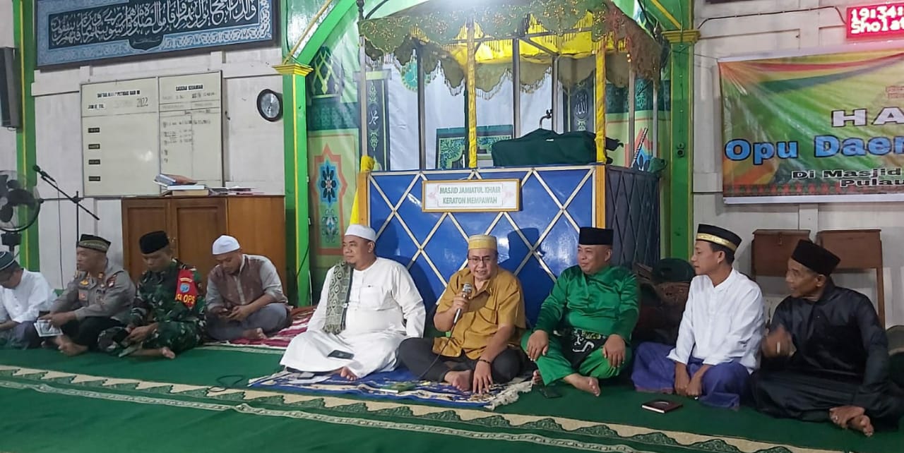 Sebelum acara dimulai, Pengeran Ratu Mardan Adiwijaya M.Sc. Phd yang merupakan Raja Mempawah ke-13 ini mengucapkan selamat datang dan banyak terima kasih kepada para tamu undangan yang hadir di Masjid Jami’atul Khair Keraton Mempawah.