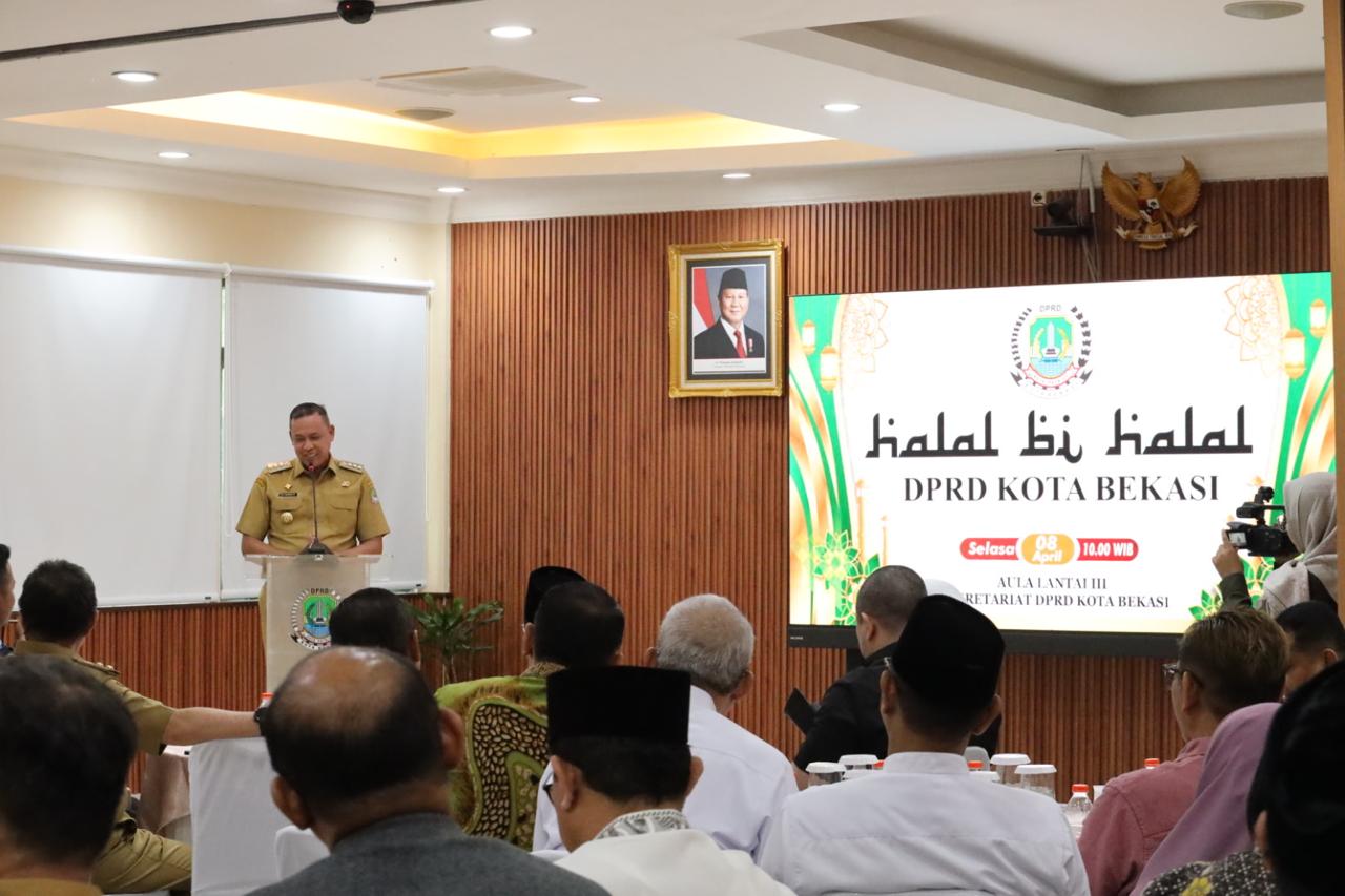 KOTABEKASI – Wali Kota Bekasi Tri Adhianto dan Wakil Wali Kota Bekasi Abdul Harris Bobihoe beserta istri dan Forkopimda hadiri Halal Bi Halal di DPRD Kota Bekasi.