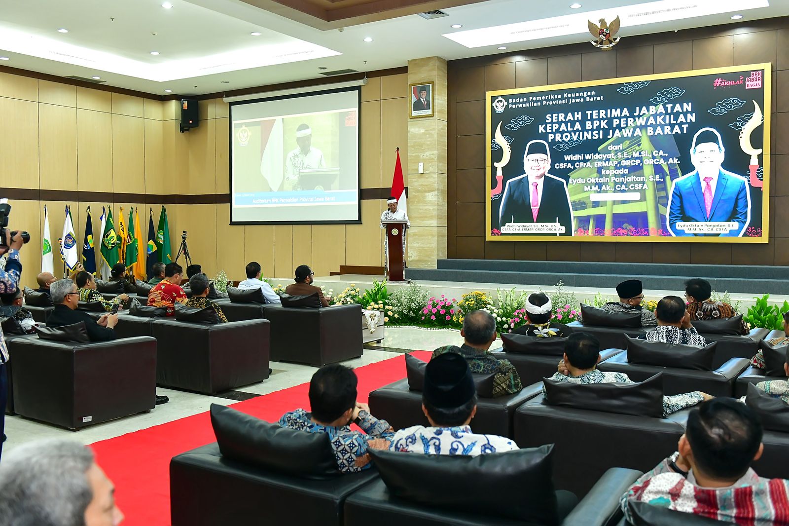 Bertempat di auditorium Kantor BPKP Provinsi Jawa Barat acara serah terima jabatan Kepala BPK Perwakilan Provinsi Jawa Barat dari Widhi Widayat kepada Eydu Oktain Panjaitan