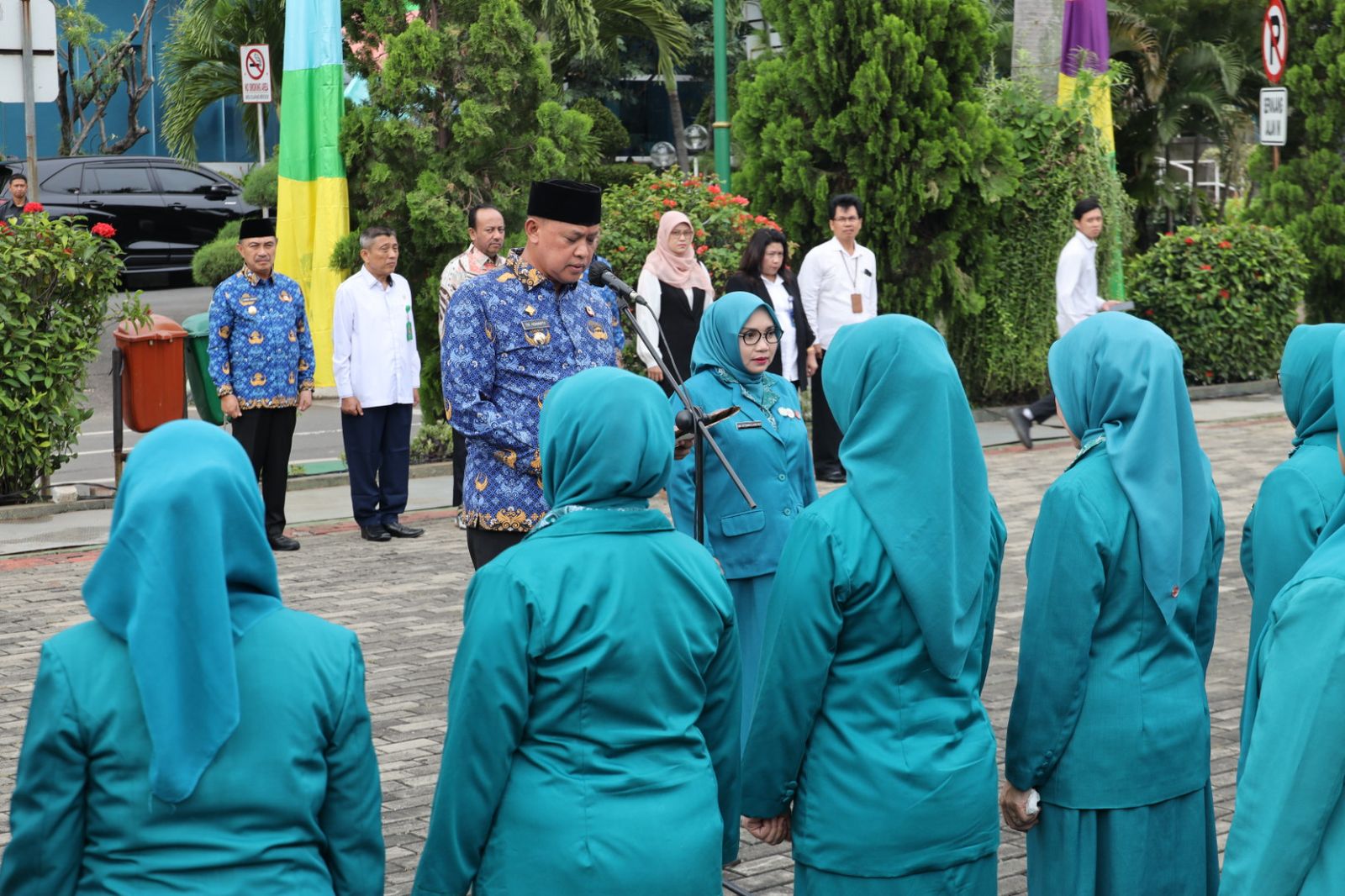 Kota Bekasi – Apel pagi hari ini yang dipimpin langsung oleh Wali Kota Bekasi, Tri Adhianto yang didampingi Ketua TP PKK Kota Bekasi, Dwi Setyorini bersama Wakil Wali Kota Bekasi, Abdul Haris Bobihoe serta istri Wakil Wali Kota Bekasi, Wuri Handayani dalam rangkaian apel pelantikan Ketua TP PKK Kecamatan dan Kelurahan se Kota Bekasi yang dilakukan oleh Pembina TP PKK Kota Bekasi, Tri Adhianto.