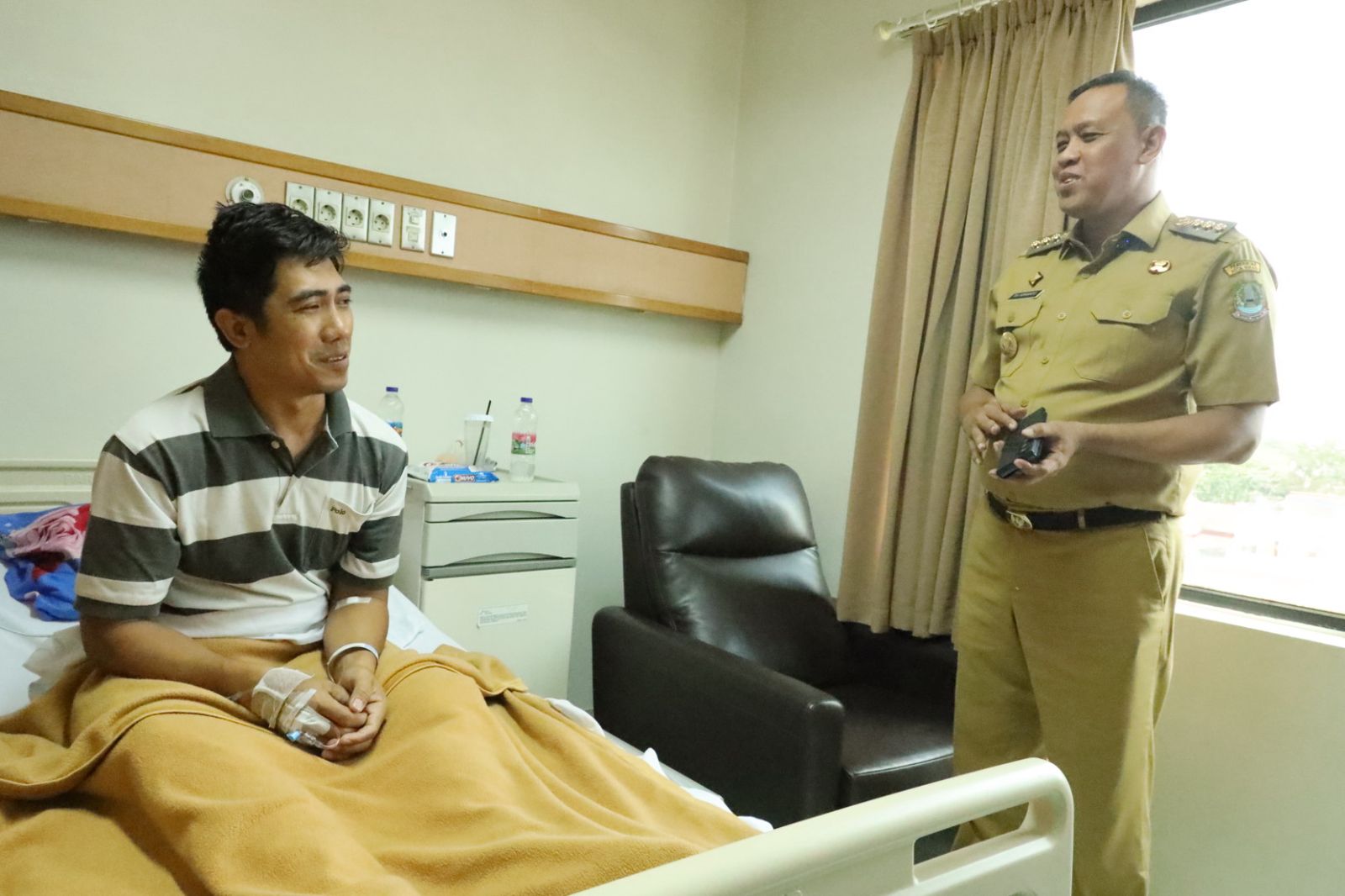 Bekasi, 8 April 2025 — Wali Kota Bekasi, Tri Adhianto, didampingi Direktur Rumah Sakit Mitra Keluarga Bekasi Barat, hari ini mengunjungi Sutiyono (39), petugas keamanan rumah sakit yang menjadi korban penganiayaan oleh keluarga pasien.