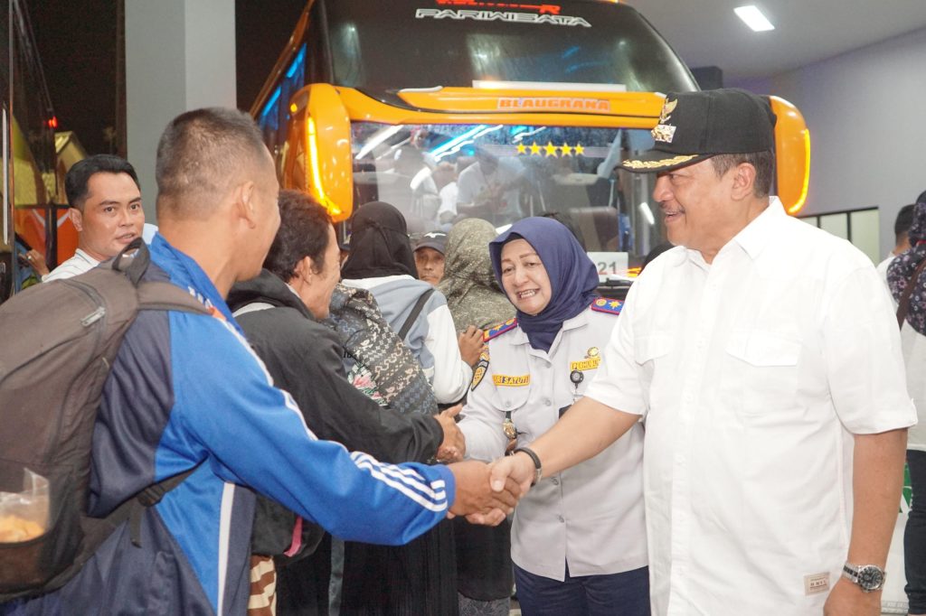 SALATIGA – Wali Kota Salatiga, Robby Hernawan, bersama Kepala Dinas Perhubungan Kota Salatiga, Sri Satuti, dan Kepala Terminal Tingkir, Vicky Chandra Yanuar, dengan penuh semangat menyambut kedatangan pemudik asal Salatiga di Terminal Tingkir, Rabu (26/3/25) malam. Pemudik yang tiba tersebut merupakan bagian dari program mudik gratis yang difasilitasi oleh Pemkot Salatiga dan Jasa Raharja.