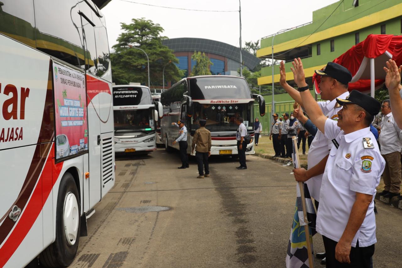 KOTABEKASI – Tawa gembira terpancar dari wajah 684 peserta mudik gratis 2025. Mereka diberangkatkan langsung oleh Wali Kota Bekasi Tri Adhianto dan Wakil Wali Kota Bekasi (Wawali) Harris Bobihoe dalam program yang diselenggarakan oleh Dinas Perhubungan Kota Bekasi.