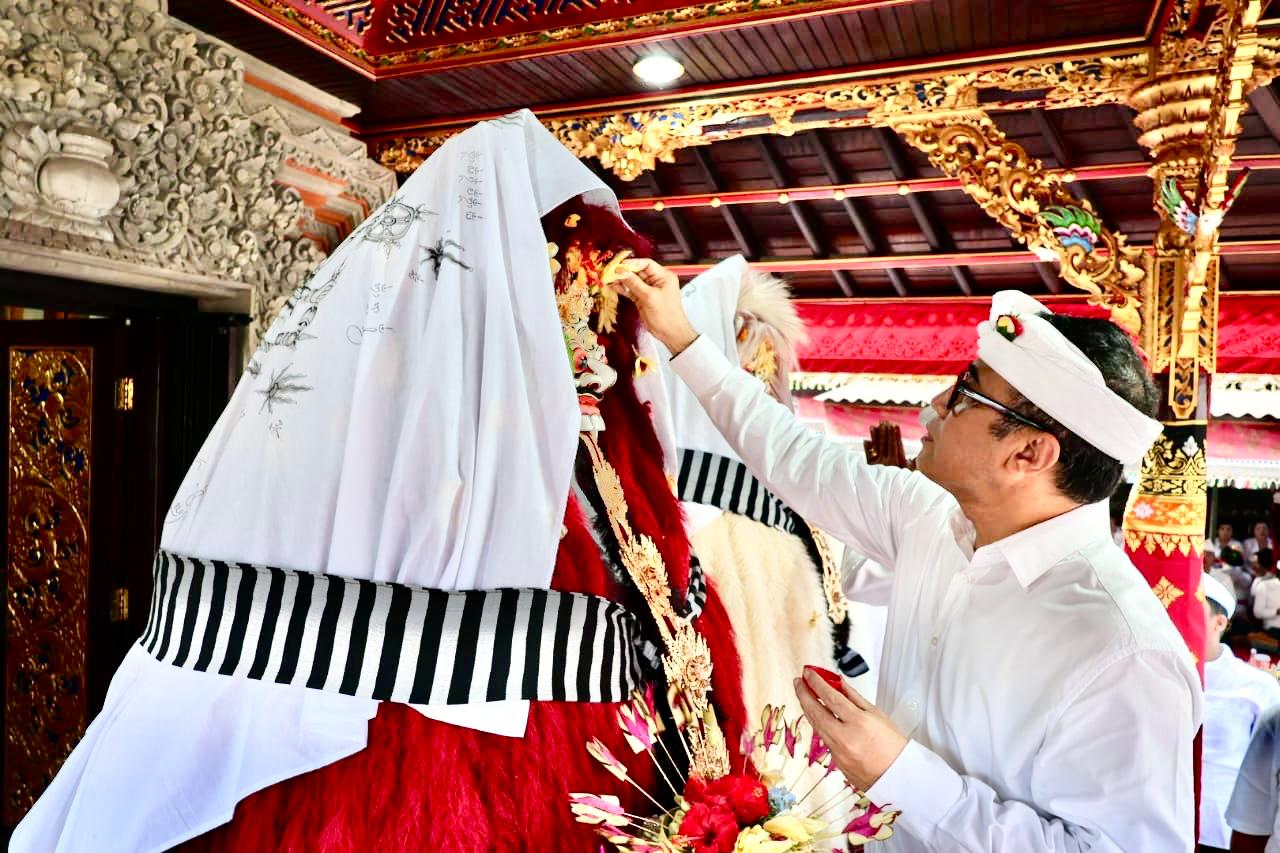 Denpasar – Walikota Denpasar, I Gusti Ngurah Jaya Negara menghadiri Karya Ngeratep, Melaspas lan Pasupati Sesuhunan di Pura Dangka, Banjar Bengkel, Desa Adat Sumerta, Kecamatan Denpasar Timur pada Jumat (14/3).