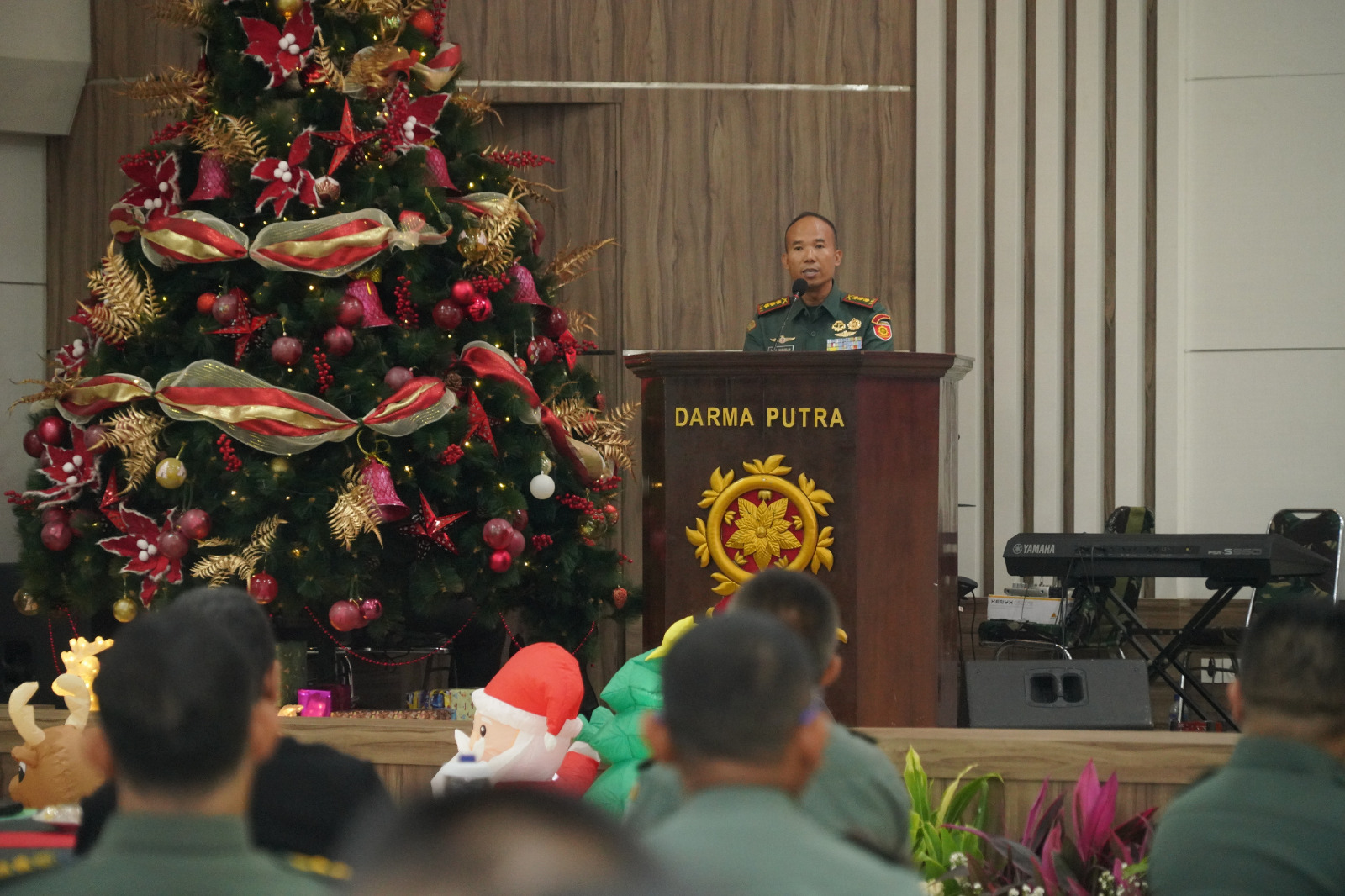 Jakarta – Satuan jajaran Kostrad se-Jabodetabek melaksanakan Perayaan Natal Bersama di Ruang Mandala Markas Kostrad, Jakarta Pusat. Selasa (7/1/2025).