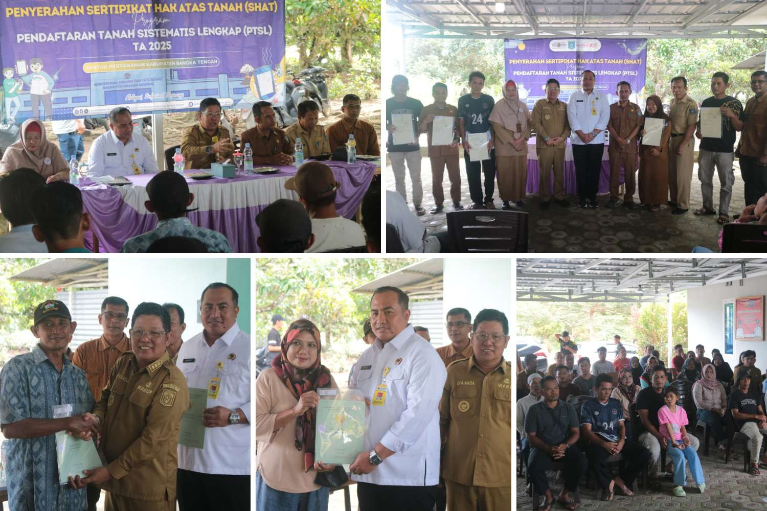 Sungaiselan – Sebanyak 218 warga Kecamatan Sungaiselan menerima Sertifikat Hak Milik (SHM) program Pendaftaran Tanah Sistematis Lengkap (PTSL) tahun 2025 dari Badan Pertanahan Nasional (BPN) Bangka Tengah yang bekerja sama dengan Pemerintah Kabupaten Bangka Tengah (Pemkab Bateng). Penyerahan SHM ini diserahkan langsung oleh Wakil Bupati Bateng, Efrianda, bersama Kepala BPN Bateng, Gunanto.
