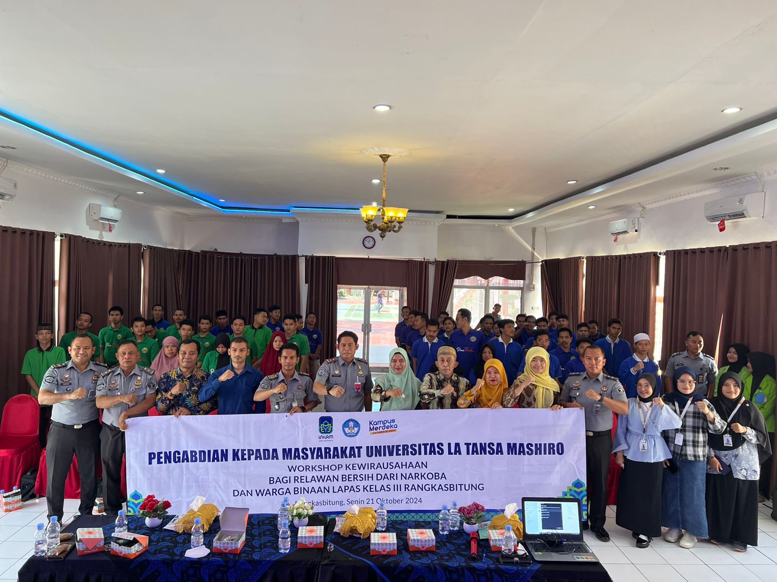 Rangkasbitung,Pelitakota.id Lapas kelas III Rangkasbitung Kanwil Kemenkumham Banten bekerjasama dengan Universitas Latansa Mashiro menggelar kegiatan pengabdian masyarakat dalam bentuk workshop yakni program pengembangan kewirausahaan bagi relawan bersih dari narkoba dan Warga Binaan Pemasyarakatan Lapas Rangkasbitung, Senin (21/10)