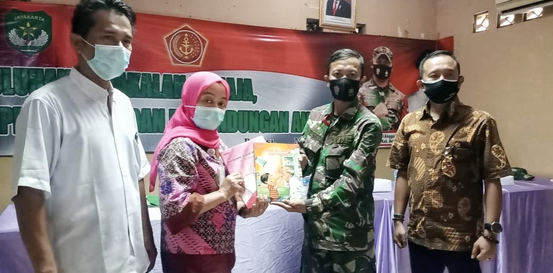 Akhir kegiatan dilakukan penyerahan bantuan buku bacaan anak secara Simbolis, yang rencananya akan ditempatkan di taman baca Posyandu TMMD ke 110 tahun 2021 oleh ibu Titin kabid (MR/PN)