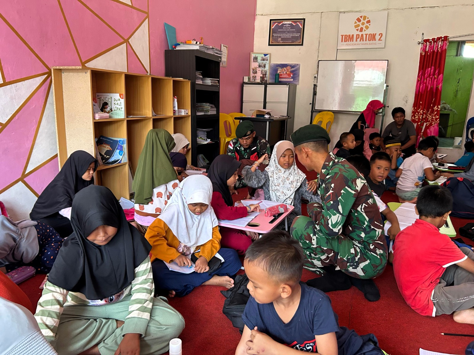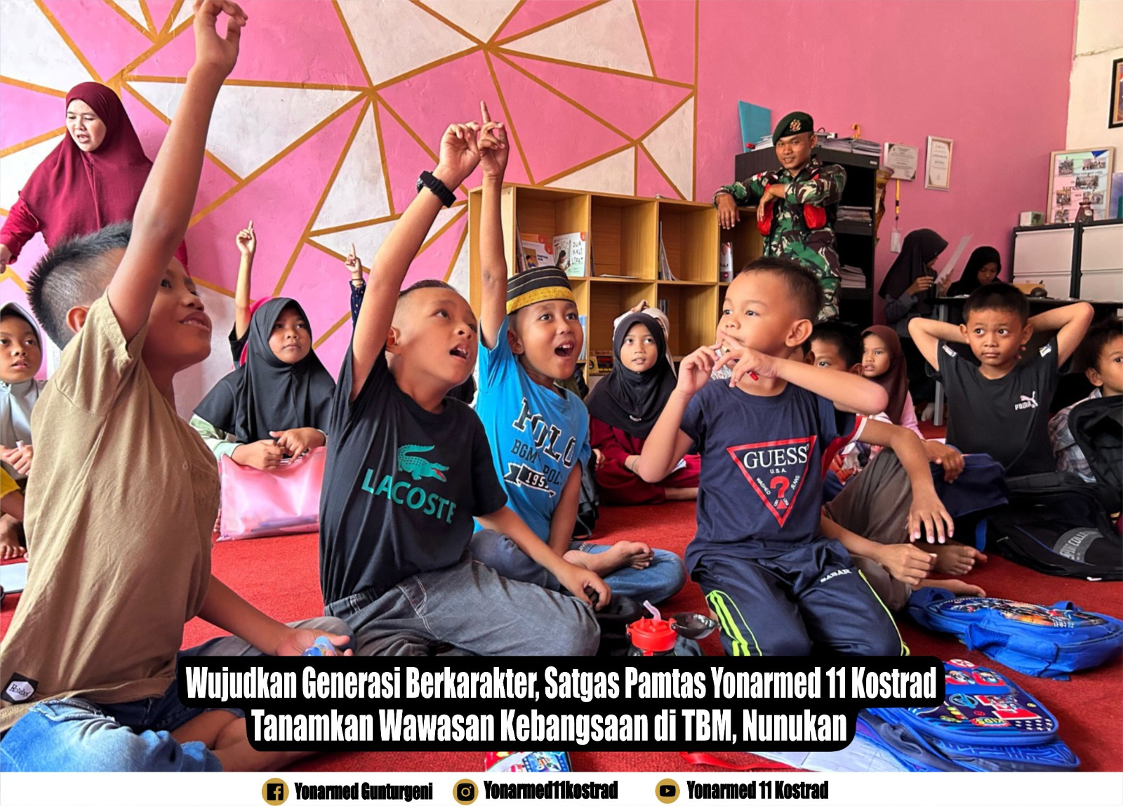 Nunukan – Dalam upaya menanamkan nilai-nilai kebangsaan sejak dini, personel Satgas Pamtas RI-Malaysia Yonarmed 11 Kostrad Pos Bambangan menggelar kegiatan pembelajaran dan pemberian wawasan kebangsaan di Taman Baca Masyarakat (TBM) Desa Aji Kuning, Kecamatan Sebatik Tengah, Kabupaten Nunukan. Sabtu (8/3/2025).