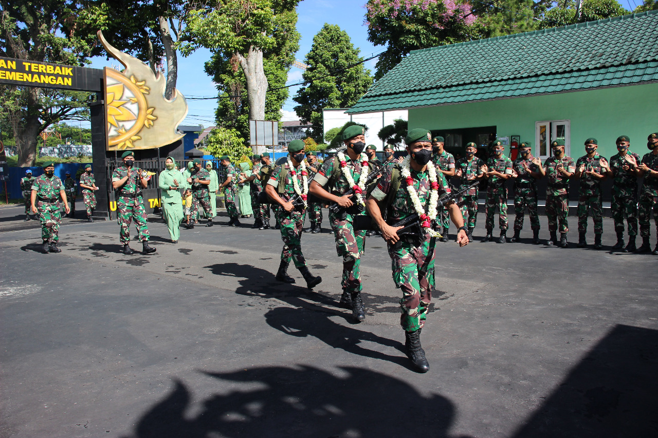 “Selanjutnya dengan telah kembalinya ke satuan, agar segera menyesuaikan diri dengan lingkungan dan kondisi satuan serta tidak larut dalam kegembiraan yang berlebih karena ini akan berdampak negatif terhadap perilaku kita sebagai prajurit dan gunakan waktu untuk bersilaturahmi kepada orang tua,” tambahnya.