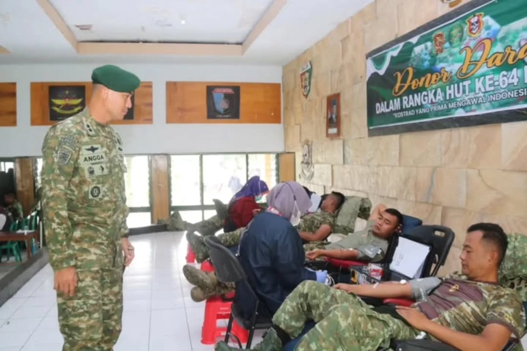Kegiatan donor darah ini dilaksanakan bekerja sama dengan Palang Merah Indonesia (PMI) Kabupaten Garut. Para prajurit dan anggota Persit yang mengikuti kegiatan ini tampak antusias dan bersemangat dalam mendonorkan darahnya. (R_Kfs74D).