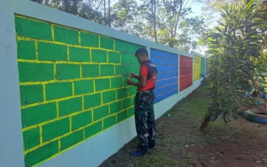 Letda Inf Alten selaku koordinator kegiatan menyampaikan bahwa pembenahan fasilitas sekolah yang dilakukan meliputi pengecatan dinding pagar, penambahan besi di gapura pintu masuk, pemasangan kawat pengaman diatas pagar, pemeriksaan kelayakan wahana edukasi permainan dan perbaikan sanitasi toilet sekolah.