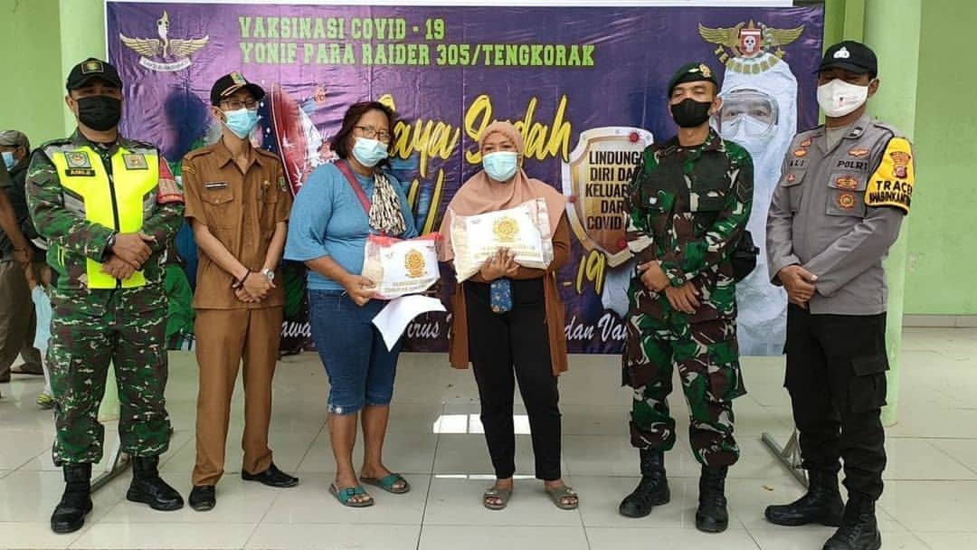 Pelaksanaan vaksinasi Covid-19 yang diselenggarakan di Markas Yonif Para Raider 305 Kostrad tersebut sedikit berbeda dari biasanya, dimana pada kegiatan Vaksin kali ini masyarakat setelah divaksin memperoleh bantuan paket Sembako gratis berupa beras.
