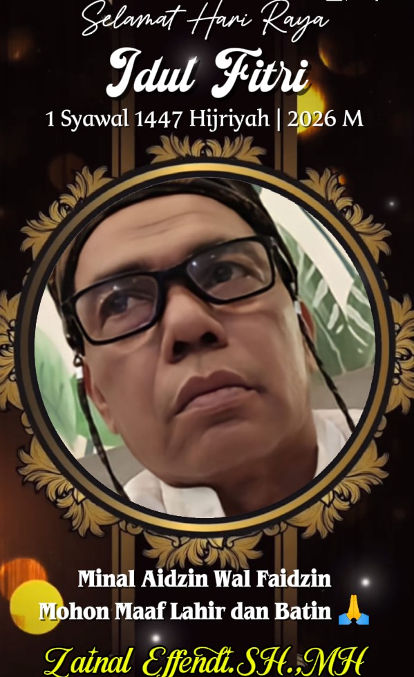 Lebih lanjut Pakar Hukum Ahli Pidana Advokat Zainal Effendi. SH.,MH bersama keluarga mengucapkan” Selamat Hari Raya Idul Fitri 1447.H” Mohon Maaf Lahir dan Batin, dengan hati yang tulus saya pribadi bersama pengurus menyampaikan mohon maaf atas segala kesalahan yang pernah terjadi.